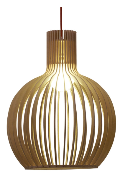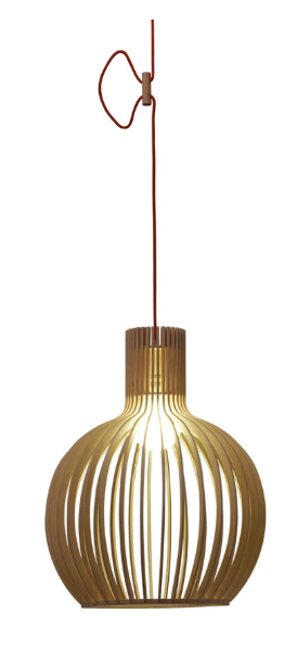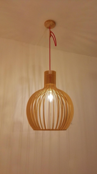 Lámpara colgante de 1 luz Ser. Lámpara de 1 x E-27 (no incluida) apto bajo consumo y led. Acabado en madera natural. Cable trensado en color rojo.