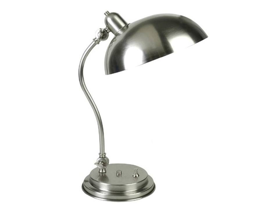 Lampara de mesa de 1 luz con caño curvo media esfera, Acabado: Níquel mate.